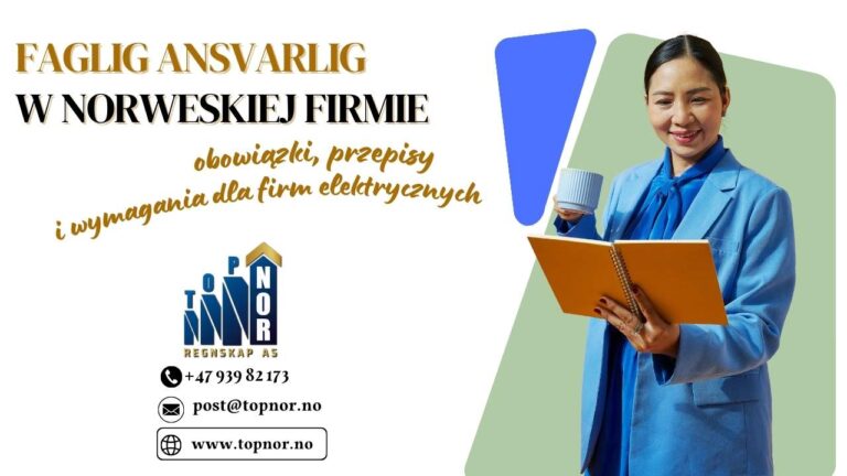 Faglig ansvarlig to kluczowa funkcja w firmach elektrycznych działających w Norwegii. Zgodnie z przepisami wydanymi przez norweski urząd ds. bezpieczeństwa społecznego i gotowości kryzysowej – Direktoratet for samfunnssikkerhet og beredskap (DSB) – każde przedsiębiorstwo wykonujące prace objęte regulacjami dotyczącymi instalacji elektrycznych musi wyznaczyć osobę pełniącą tę rolę. Osoba pełniąca funkcję faglig ansvarlig musi posiadać odpowiednie kwalifikacje zawodowe oraz odpowiada za to, aby działalność firmy była prowadzona zgodnie z obowiązującymi przepisami prawa i normami technicznymi. Do jej zadań należy również nadzór nad systemem jakości oraz zapewnienie profesjonalnej kontroli nad wykonywanymi pracami elektrycznymi. Funkcja ta stanowi istotny element systemu bezpieczeństwa w branży elektroinstalacyjnej. Podstawą prawną dla tej roli są między innymi przepisy zawarte w rozporządzeniu dotyczącym przedsiębiorstw elektroinstalacyjnych i wymagań kwalifikacyjnych dla prac związanych z instalacjami elektrycznymi, czyli Forskrift om elektroforetak og kvalifikasjonskrav for arbeid knyttet til elektriske anlegg og elektrisk utstyr (FEK), a także ustawa o nadzorze nad instalacjami i urządzeniami elektrycznymi – Lov om tilsyn med elektriske anlegg og elektrisk utstyr (El-tilsynsloven). Obowiązek posiadania faglig ansvarlig dotyczy wszystkich firm wykonujących prace wymagające rejestracji w Elvirksomhetsregisteret. Rejestr ten prowadzony jest przez DSB i obejmuje przedsiębiorstwa zajmujące się pracami przy instalacjach elektrycznych. Bez wskazania osoby pełniącej funkcję faglig ansvarlig firma nie może zostać wpisana do tego rejestru, a tym samym legalnie prowadzić działalności w tym zakresie. Zakres obowiązków faglig ansvarlig obejmuje przede wszystkim nadzór nad realizacją prac elektrycznych oraz kontrolę ich zgodności z obowiązującymi przepisami technicznymi, w tym m.in. z regulacjami FEL oraz normą NEK 400. Osoba ta odpowiada również za rozwój kompetencji pracowników oraz bierze udział w tworzeniu i utrzymaniu systemu kontroli wewnętrznej w przedsiębiorstwie (internkontroll). DSB podkreśla, że funkcja ta nie może być traktowana wyłącznie formalnie – wymaga ona realnego zaangażowania w działalność firmy oraz rzeczywistego wpływu na sposób wykonywania prac. Przepisy FEK nie wprowadzają bezpośredniego zakazu pełnienia funkcji faglig ansvarlig w więcej niż jednej firmie. Jednak według wytycznych DSB zakres obowiązków musi być możliwy do faktycznego wykonania w każdej z nich. Oznacza to, że osoba ta powinna mieć realną możliwość sprawowania nadzoru nad działalnością przedsiębiorstwa, a jej rola nie może ograniczać się jedynie do formalnego wpisu w dokumentach. W praktyce oznacza to również, że godziny pracy w różnych firmach nie powinny się pokrywać. Wiele firm zagranicznych popełnia podobne błędy przy organizowaniu działalności w Norwegii. Jednym z najczęstszych jest traktowanie funkcji faglig ansvarlig wyłącznie jako wymogu formalnego potrzebnego do rejestracji przedsiębiorstwa. Problemem bywa także brak rzeczywistego nadzoru przy dużej liczbie prowadzonych projektów, nieprecyzyjne umowy określające zakres odpowiedzialności lub rozpoczęcie działalności przed zapewnieniem odpowiednich kwalifikacji. Funkcja faglig ansvarlig nie jest więc jedynie elementem administracyjnym, lecz stanowi ważny mechanizm zapewniający bezpieczeństwo oraz zgodność prac elektrycznych z obowiązującymi przepisami i normami technicznymi w Norwegii. TOPNOR REGNSKAP AS Twoje polskie autoryzowane biuro księgowe w Norwegii +47 939 82 173 post@topnor.no