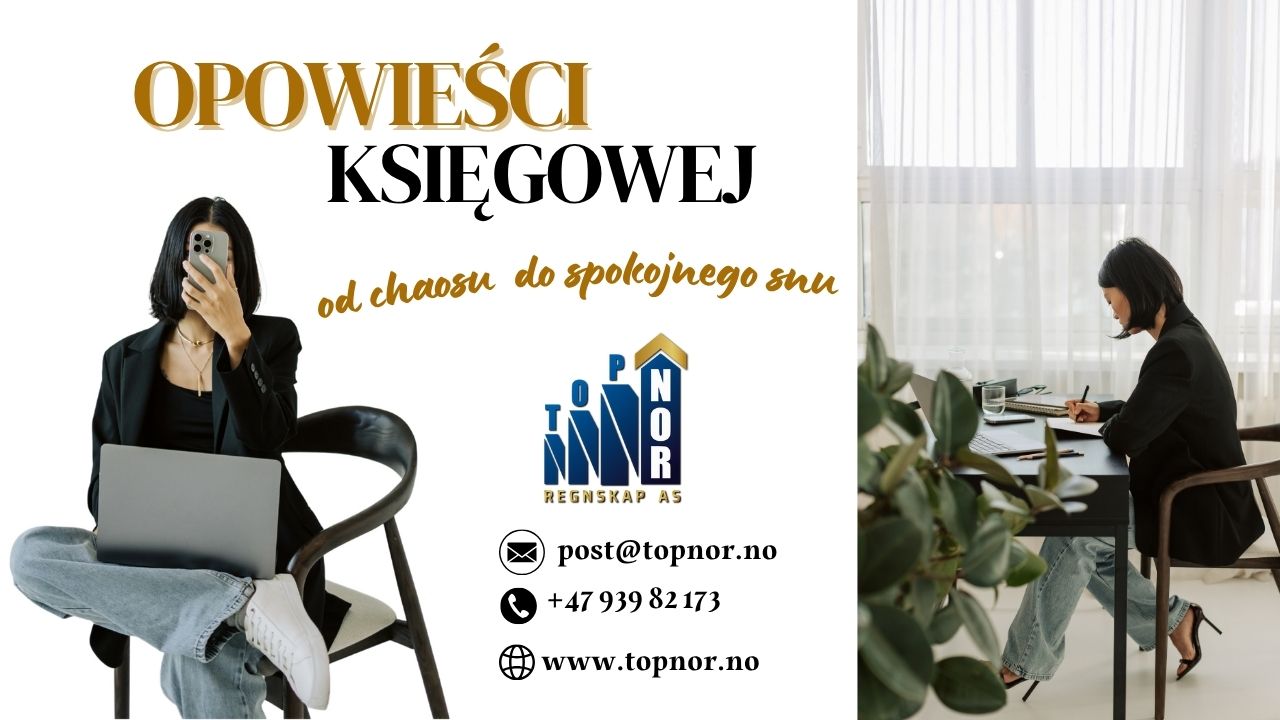 Księgowość może wydawać się nudna, trudna i pełna skomplikowanych przepisów, ale w praktyce to codzienne życie firmy – z jego wzlotami i potknięciami. Łatwiej zapamiętać opowieść o prawdziwych problemach i ich rozwiązaniach niż suche definicje z podręcznika. Jeśli w tej krótkiej opowieści rozpoznasz choć trochę siebie, to może właśnie dziś będzie Twój moment, by uniknąć kosztownych błędów. Dziś zacznijmy od podstaw. Opowieści księgowej: od chaosu w księgowości do spokojnego snu „Jeszcze rok temu myślałem, że ogarniam finanse mojej firmy. Przecież to tylko faktury, podatki i parę tabel w Excelu, prawda? Okazało się, że byłem w błędzie. Pierwszy kubeł zimnej wody – VAT Zawsze wypełniałem deklaracje sam. Ale raz pomyliłem stawkę VAT, innym razem zapomniałem o odliczeniu. A kiedy spóźniłem się z wysyłką, dostałem list z urzędu skarbowego. Stres, nerwy, a do tego zapłaciłem więcej niż powinienem. Puste konto w środku miesiąca Miałem pełno zleceń, a na koncie… pustki. Dlaczego? Wystawiałem faktury z opóźnieniem, wydatki planowałem „na oko”, a zobowiązań do zapłaty nie liczyłem w ogóle. Raz zabrakło mi nawet na zapłatę podatku – to był moment, w którym poczułem, że tonę. Wpadka z wypłatami Liczyłem pensje pracowników samodzielnie. W jednym miesiącu źle policzyłem składki, w innym spóźniłem się z raportem do urzędu. Było mi wstyd przed ludźmi, którzy pracują dla mnie, i bolało mnie, że przez moje błędy dostali mniej pieniędzy. Księgowy chaos w szufladzie Gdy urząd poprosił o dokumenty, zacząłem szukać po szufladach, torbach i… samochodzie. Niektóre faktury były gdzieś w skrzynce mailowej, inne po prostu zaginęły. Ostatecznie urząd odmówił mi kilku odliczeń i zapłaciłem wyższy podatek. Życie bez planu Byłem tak zajęty bieżącą pracą, że nie myślałem o przyszłości. Nie miałem strategii finansowej, więc przepuszczałem pieniądze, które mogły zostać zainwestowane w rozwój. Moment zwrotny Pewnego dnia kolega z branży powiedział: „Poszukaj biura księgowego, oni postawią cię na nogi”. I miał rację. Biuro księgowe zrobiło porządek w moim VAT, przejęli obsługę płac, ustawili prognozę płynności i pomogli mi stworzyć plan na kilka lat do przodu. Dziś śpię spokojnie. Wiem, ile zarabiam, ile wydaję i jakie podatki zapłacę. A co najlepsze – moja firma w końcu zaczęła się rozwijać”. Jeśli czytasz to i czujesz, że to trochę Twoja historia… Nie czekaj, aż problemy urosną. Zadzwoń do Topnor Regnskap AS. Umów się na bezpłatną konsultację +47 939 82 173