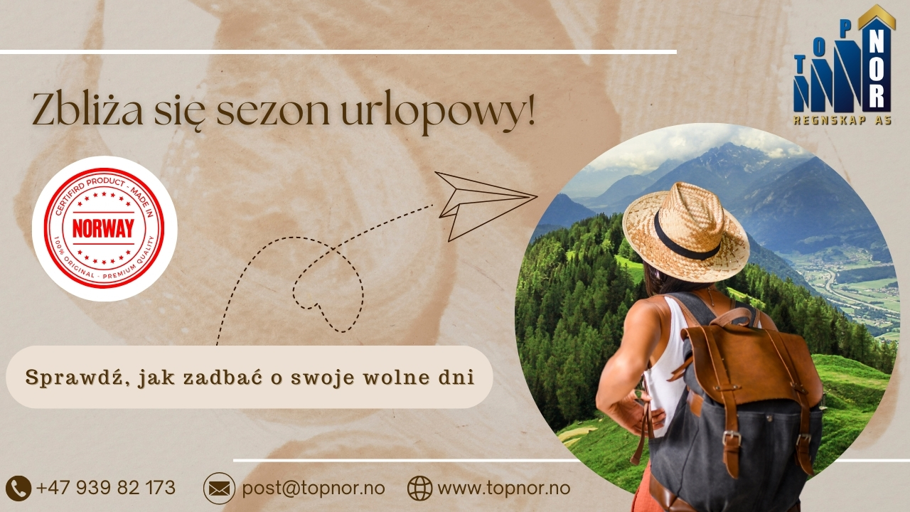 Wraz ze zbliżającym się okresem letnim wielu pracowników w Norwegii zaczyna planować swoje wakacje. Warto więc przypomnieć sobie, jakie zasady dotyczą urlopu i w jaki sposób zadbać o jego prawidłowe wykorzystanie. Norweskie przepisy, a dokładnie Ustawa o Urlopach (Ferieloven), jasno regulują te kwestie. Każdy zatrudniony ma prawo do 25 dni roboczych urlopu rocznie, a osoby powyżej 60. roku życia otrzymują dodatkowe 6 dni wolnego. Urlop powinien zostać wykorzystany w roku, w którym przysługuje, a pracodawca jest zobowiązany tak zorganizować pracę, aby pracownicy mogli swobodnie korzystać z przysługujących im dni wolnych. Bardzo istotne jest również, by sam pracownik odpowiednio wcześniej zaplanował swój wypoczynek. Czasami jednak zdarzają się sytuacje, w których nie ma możliwości skorzystania z urlopu zgodnie z planem. W przypadku choroby lub innych poważnych zdarzeń losowych istnieje prawo do przeniesienia niewykorzystanych dni na kolejny rok — pod warunkiem, że powód ten zostanie udokumentowany. Dodatkowo pracownik może uzgodnić z pracodawcą przeniesienie niewykorzystanego urlopu, podpisując stosowną pisemną umowę. W takiej sytuacji można przenieść maksymalnie 12 dni niewykorzystanego wolnego. Po stronie pracodawcy leży obowiązek przypominania o konieczności wykorzystania urlopu, umożliwienia jego realizacji oraz odpowiedniego dokumentowania ustaleń dotyczących przenoszenia niewykorzystanych dni. Jeśli pracownik nie wykorzysta urlopu i nie podpisze umowy o jego przeniesieniu, w przypadku zakończenia pracy ma prawo do otrzymania ekwiwalentu finansowego za niewykorzystane dni wolne. Jednak dopóki trwa zatrudnienie, przepisy zabraniają zamiany urlopu na dodatkową wypłatę — czas wolny ma służyć regeneracji, a nie być traktowany jak element wynagrodzenia. 𝐓𝐎𝐏𝐍𝐎𝐑 𝐑𝐄𝐆𝐍𝐒𝐊𝐀𝐏 𝐀𝐒 Twoje Polskie Autoryzowane Biuro Księgowe +47 939 82 173 post@topnor.no www.topnor.no